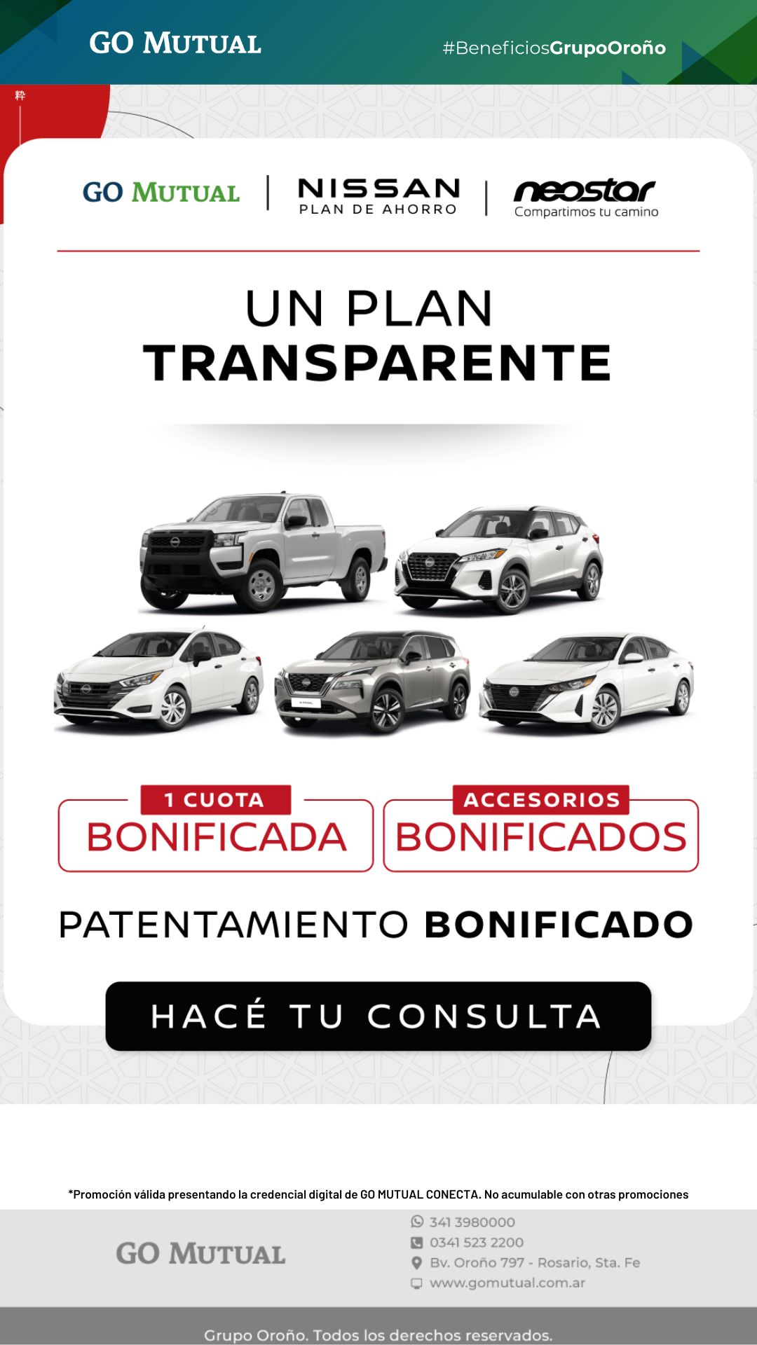 - Bonificación del 100% de la primera cuota del plan de ahorro, es decir, dicha cuota será absorbida íntegramente por LA CONTRAPARTE.