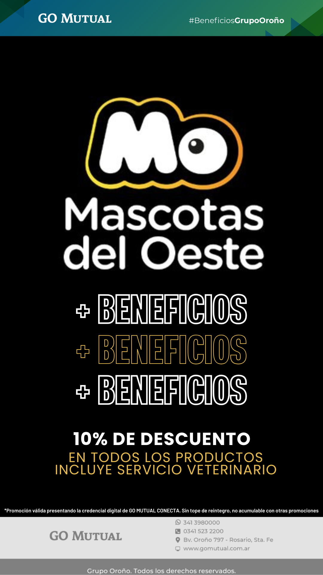 10% de DESCUENTO (sin tope de reintegro) en todos nuestros productos, incluye servicio veterinario.